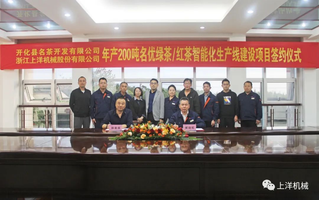 更多內(nèi)容10月24日,開化名茶開發(fā)有限公司與上洋機(jī)械正式簽約“年產(chǎn)200噸名優(yōu)綠茶/紅茶智能化生產(chǎn)線”建設(shè)項(xiàng)目。