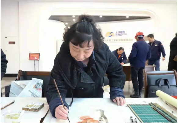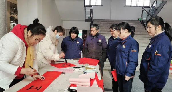 此次活動,公司邀請了來自市書法協(xié)會的書法老師們蒞臨現(xiàn)場,展示書法藝術(shù)精髓,弘揚中國特色的傳統(tǒng)民間文化。“春風浩蕩展鴻圖、虎步奔騰開勝景”、“茶緣廣裕業(yè)有孚、新程奮進正當時”......老師們妙筆生花,一對對喜氣的虎年春聯(lián)、年畫,烘托出濃濃年味;一句句美好的祝福,伴著墨香暖人心扉。上洋家人們趁工作休息間隙紛紛前來挑選心儀的虎年春聯(lián)、年畫,與老師們合影留念,現(xiàn)場一片溫馨祥和的喜慶氣氛。